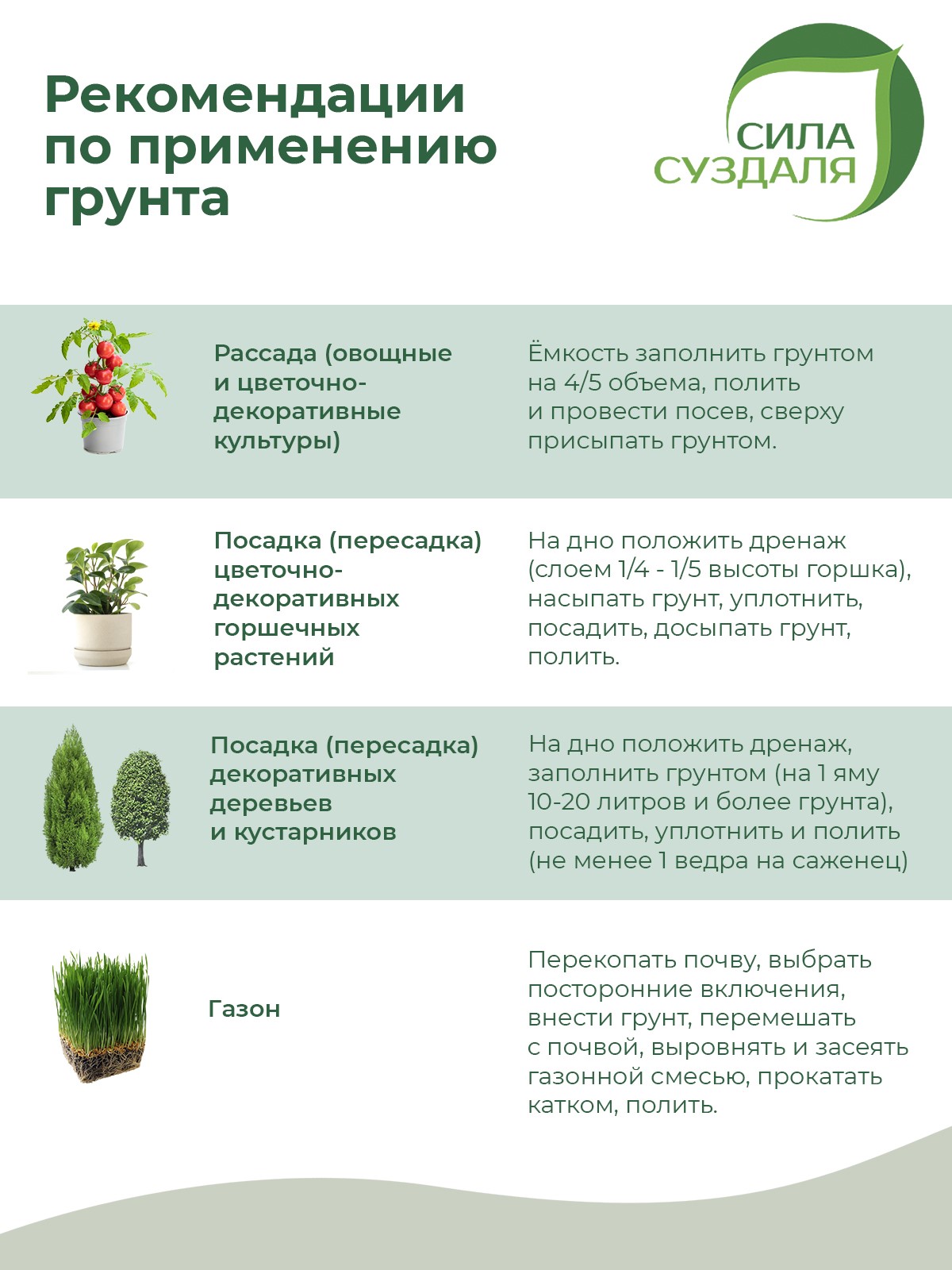 Используется для проращивания семян всех видов овощных, ягодных, цветочных и декоративных культур (на школку), для пикировки и выращивания рассады этих культур в условиях защищённого (домашних, тепличных) и открытого грунта; для выращивания всех видов плодовых, ягодных, овощных, цветочных и декоративных культур в различных климатических условиях, как в открытом, так и в защищённом грунте.